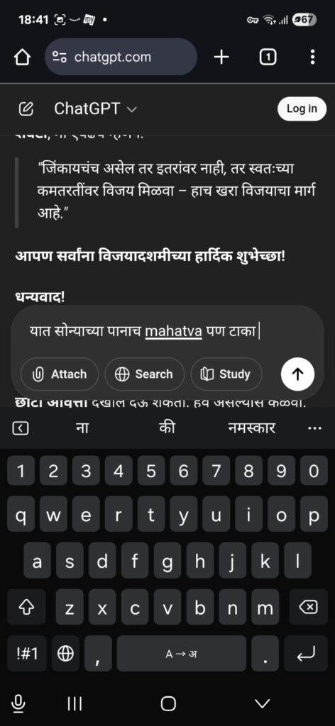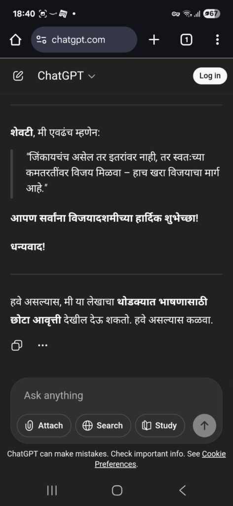 तुम्ही ChatGPT ला विचारू शकता. “मला 3 मिनिटांचं मराठी भाषण लिहून द्या, विषय – विजयादशमीचं महत्त्व.”
